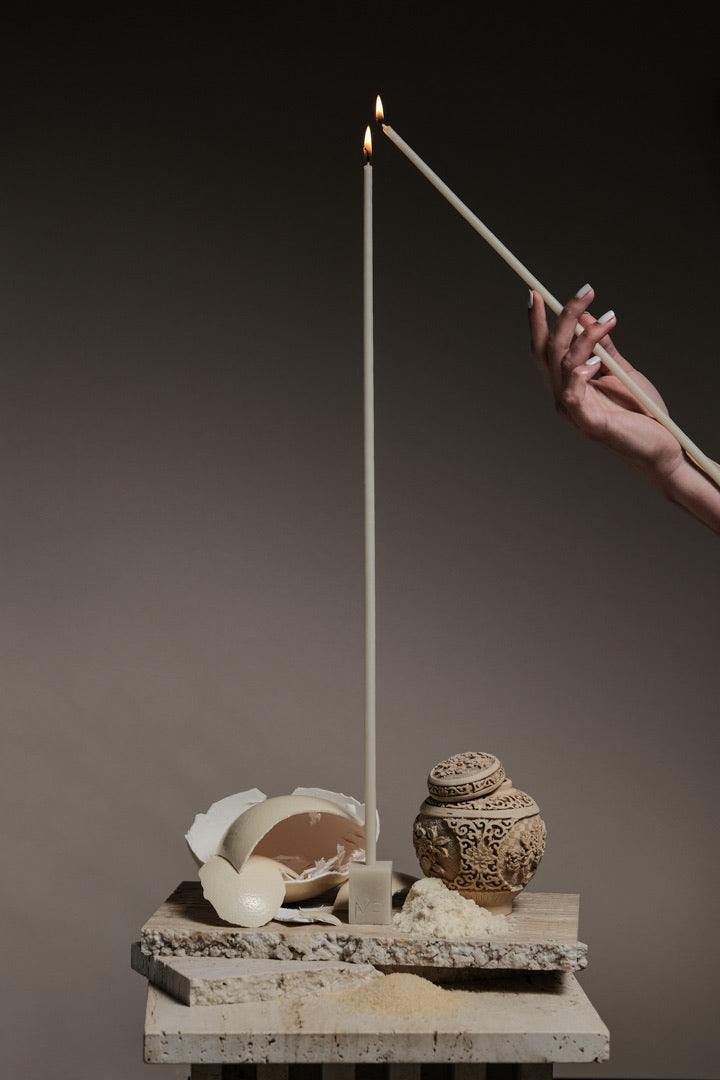 The range of candles now also has a collection of accessories to compliment; the company will continue to grow the range of accessories and candle colour offerings.The entire process is locally made in cape town, south africa and the aesthetic of the candle is now also inspiring artists from around the world to create sculptures and objet to hold the candles.